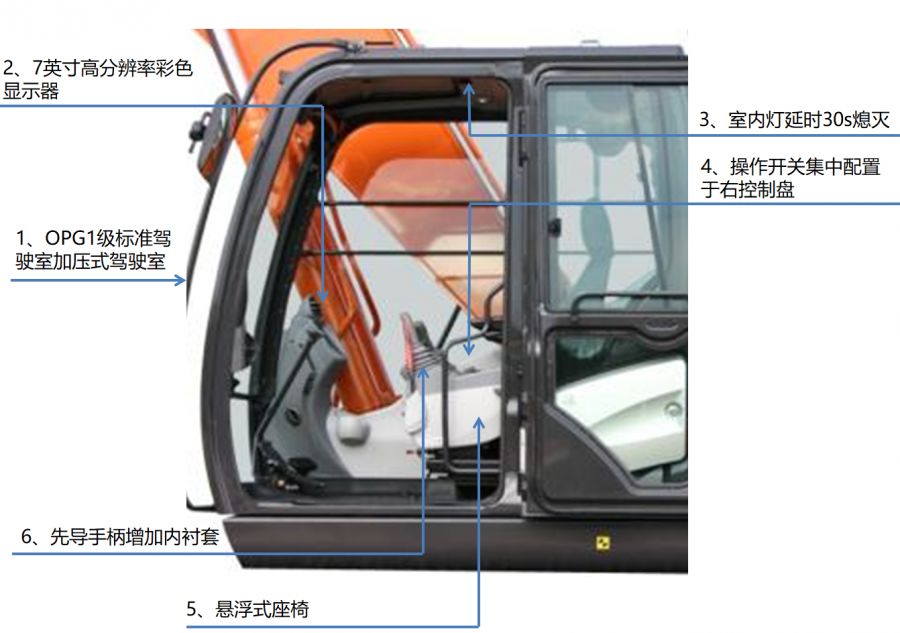 開(kāi)挖機(jī)久坐很容易引起腰間盤(pán)突出或腰肌勞損等疾病,而日立駕駛室采用人體構(gòu)造學(xué)設(shè)計(jì),懸浮式座椅,正壓室駕駛艙,OPG頂部護(hù)罩等細(xì)節(jié)設(shè)計(jì),在安全性、舒適性、便捷性上達(dá)到最理想效果,從而保障駕駛員身心健康和高效率工作。