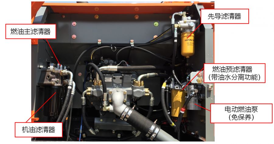 首先日立在泵室的設(shè)計(jì)上同樣體現(xiàn)出人性化的考量,所有保養(yǎng)件都集中在泵室,方便保養(yǎng),站在地上就可以更換各種濾芯!